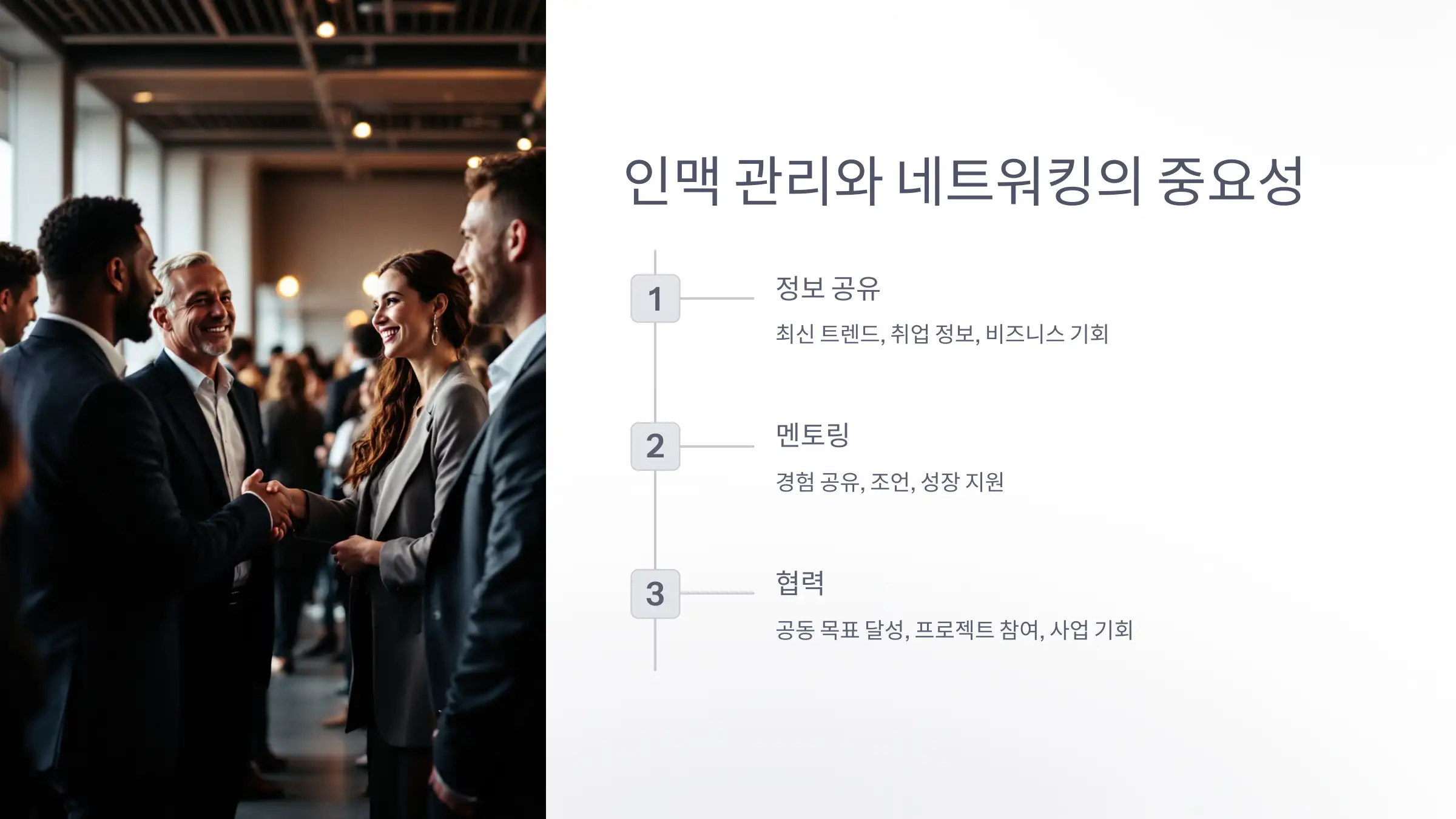 네트워킹은 취업과 경력 개발에 핵심적인 역할을 합니다.